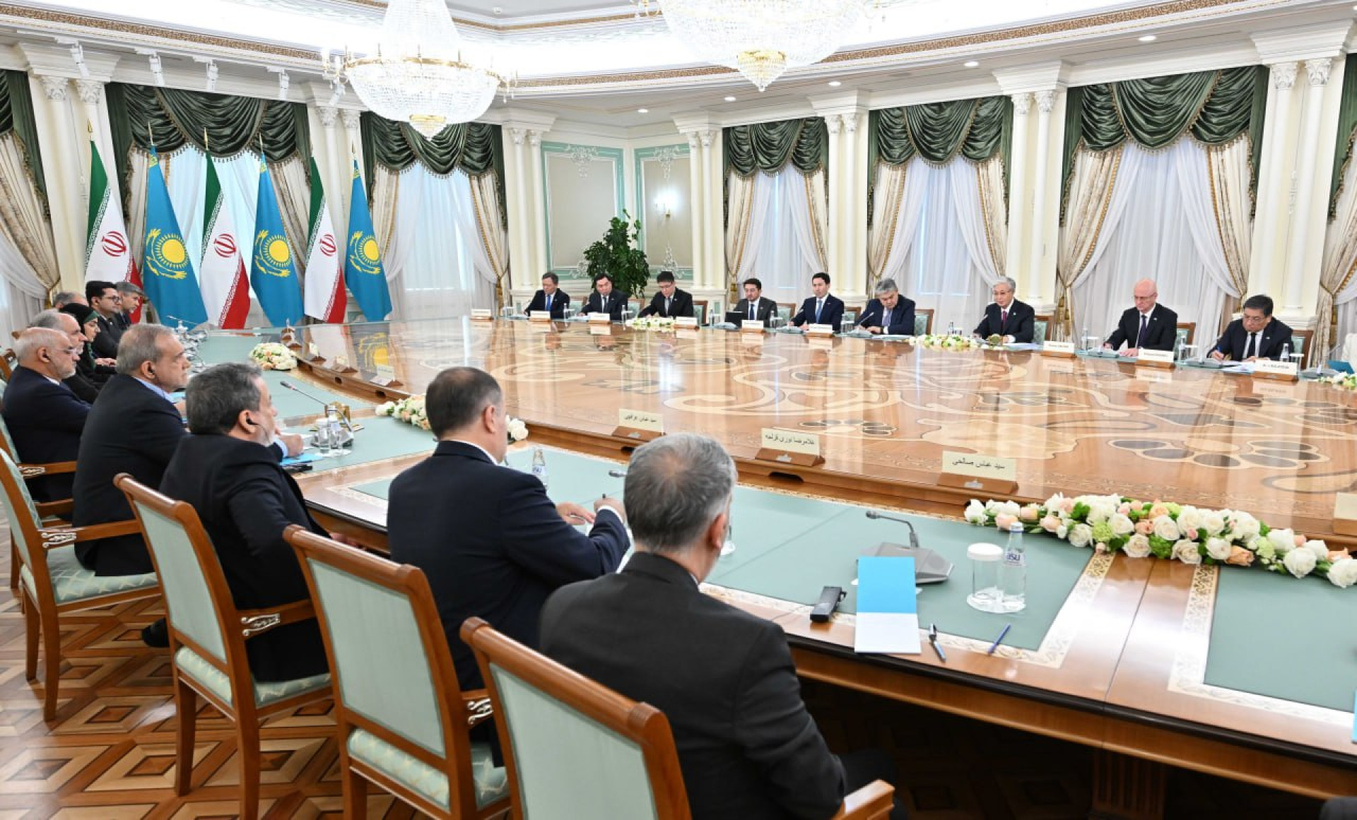 Пезешкиан, надо заметить, слушал слова Президента Казахстана очень внимательно — взгляд не уходил в сторону, только изредка появлялась короткая, спокойная улыбка. Не демонстративная — а скорее жест человека, который отмечает каждую деталь сказанного.