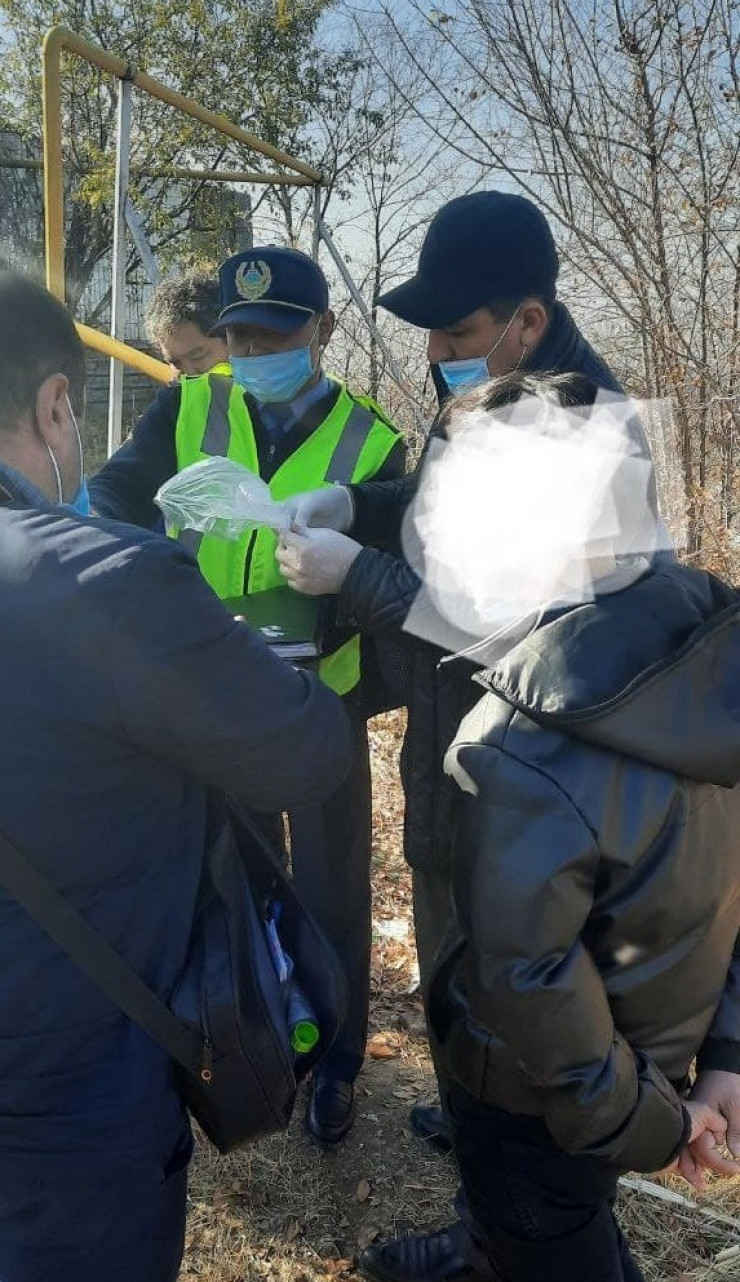 Нуржан предлагает нам съездить на задержание одного из закладчиков. Вызов поступил от жителей, проживающих на улице Горная. С поличным пойман молодой человек, ему 30, объясняет, что пошел на преступление из-за нехватки денег. С участием понятых происходит обыск, все фиксируется на камеру. Потом он показывает все точки, где оставил закладки, - всего 30 пакетиков.