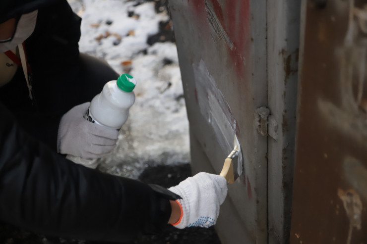 На фото: волонтеры закрашивают рекламу наркотиков