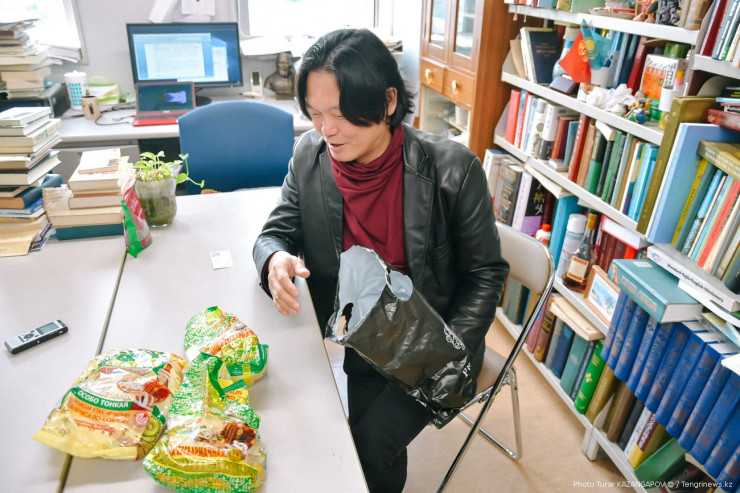 Он привозил из Казахстана газеты и журналы на казахском, начал читать их самостоятельно, так и учил язык. Теперь он раз в неделю преподает казахский японским студентам. Причем преподает в другом университете. Готовится к занятиям тщательно. Он не просто учит их языку, он знакомит их с казахской культурой.