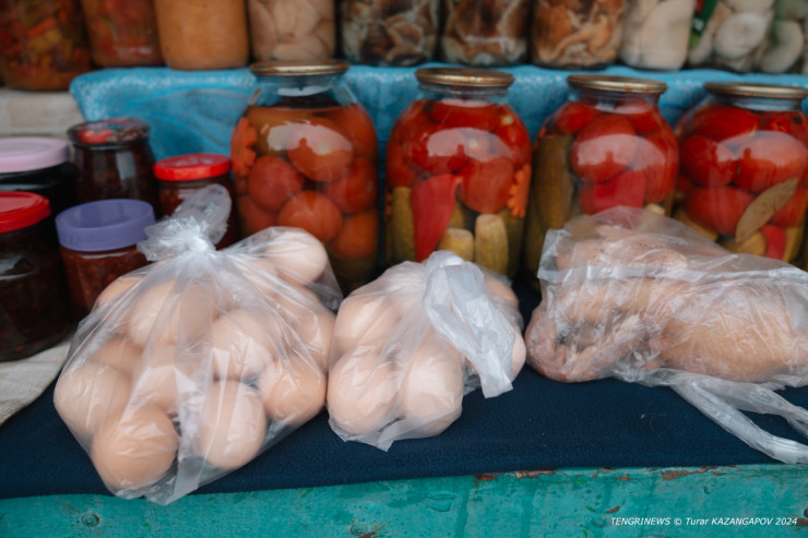 На прилавке у Алтын можно также найти домашние яйца и тушки куриц.