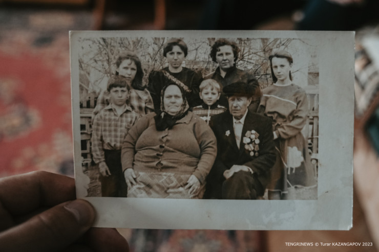 "Школой была землянка, я в ней училась. Новую уже потом построили. Мы раньше жили бедно, но дружно. Одно время у всех в деревне были землянки, каждое воскресенье взрослые мазали кому-нибудь крышу. И мы – дети – им помогали. Те, у кого крыша была из шифера, считались богатыми. Одно горе на всех. Одна беда на всех. Если веселятся, то все вместе. Свадьбы тоже вместе отмечали. Сейчас люди другие: стараются друг друга уколоть. Я такого не понимаю", - говорит пенсионерка, а после показывает нам фото своей семьи, где во главе кадра сидят ее родители.