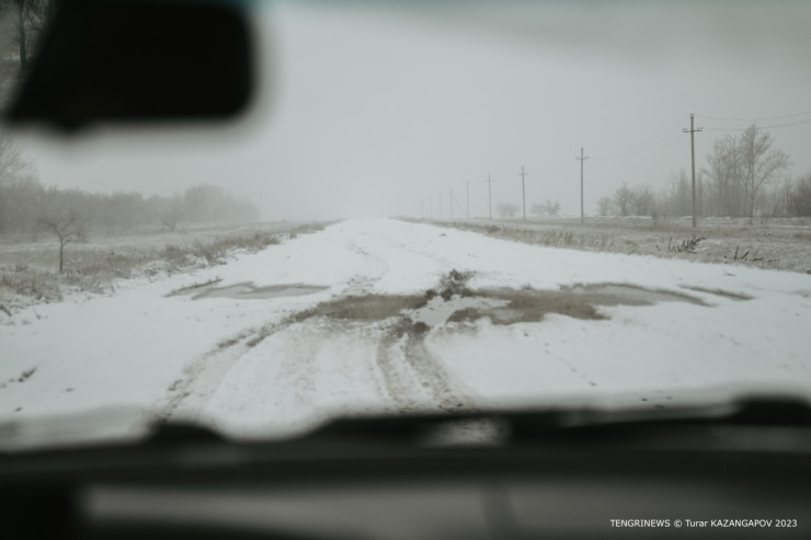 Месиво из грязи оказалось скрыто под слоем снега, выпавшего в день нашей поездки на большей части Павлодарской области. Несколько раз наша машина едва не застряла.