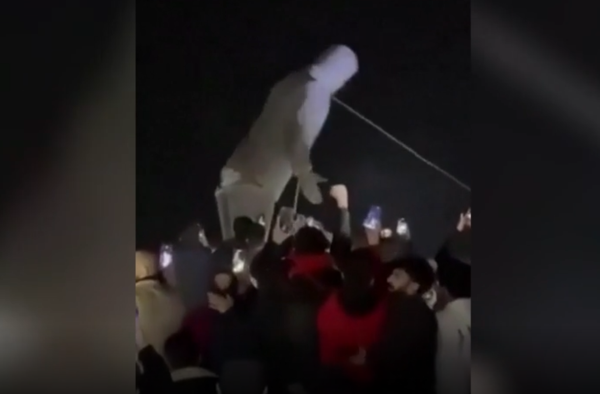 Снос памятников во время свержения режима Башара Асада в Сирии, декабрь 2024 года. Стоп-кадр из видео в соцсетях