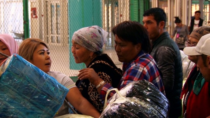 Бойкая бабушка без устали обращается к таможенникам и штурмует каждый новый автобус, куда ей преграждают путь. Вернуть товары в КНР она отказалась.