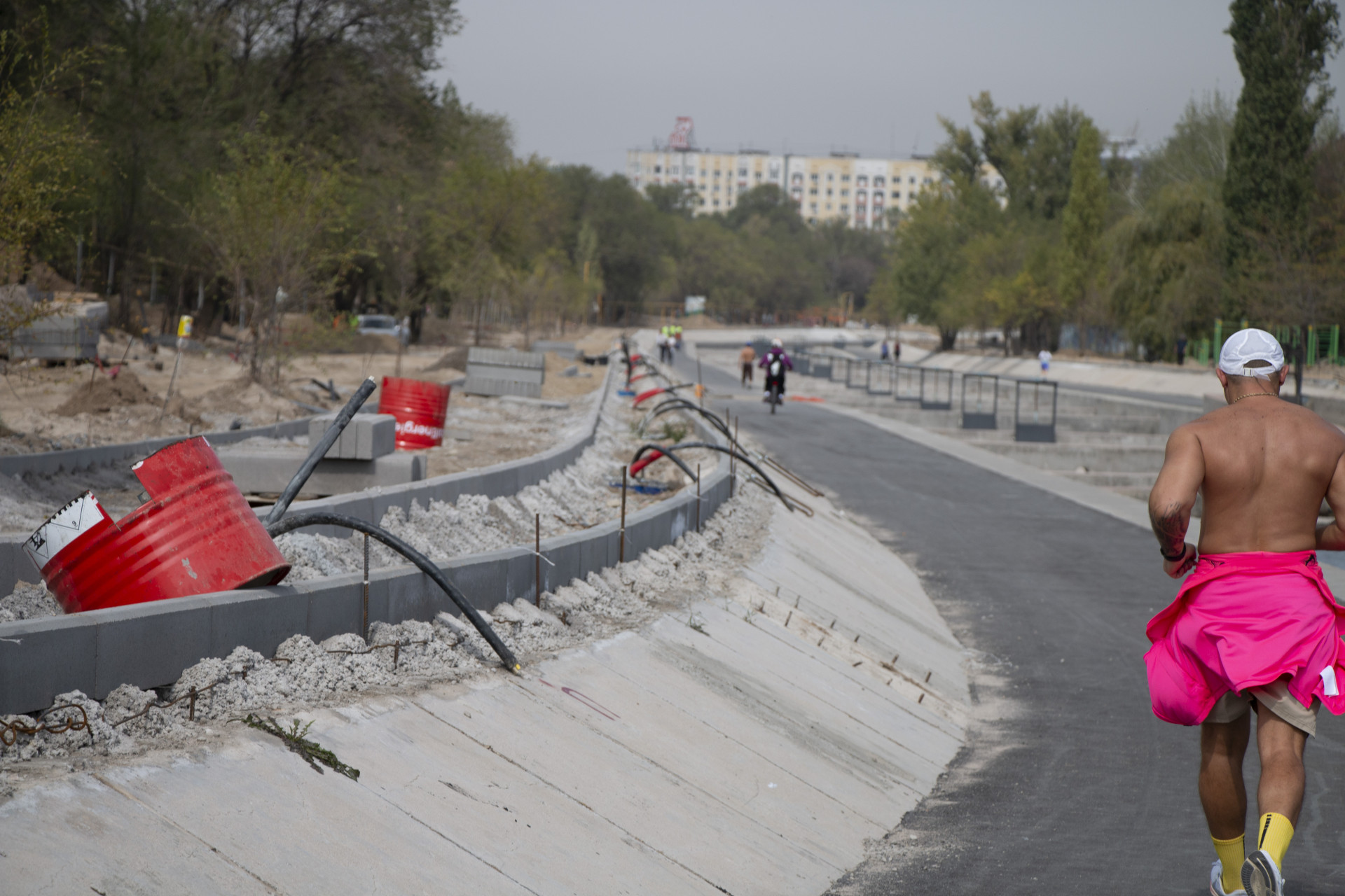Ранее наш корреспондент съездил к Большой Алматинке, чтобы лично проверить, как идут работы по реконструкции. Кадры оттуда получились крайне живописными. Например, выяснилось, что ограждения строительства выполняли, скоре, декоративную функцию, так как за них проходили бегуны, дети, велосипедисты, курьеры и вообще все желающие.