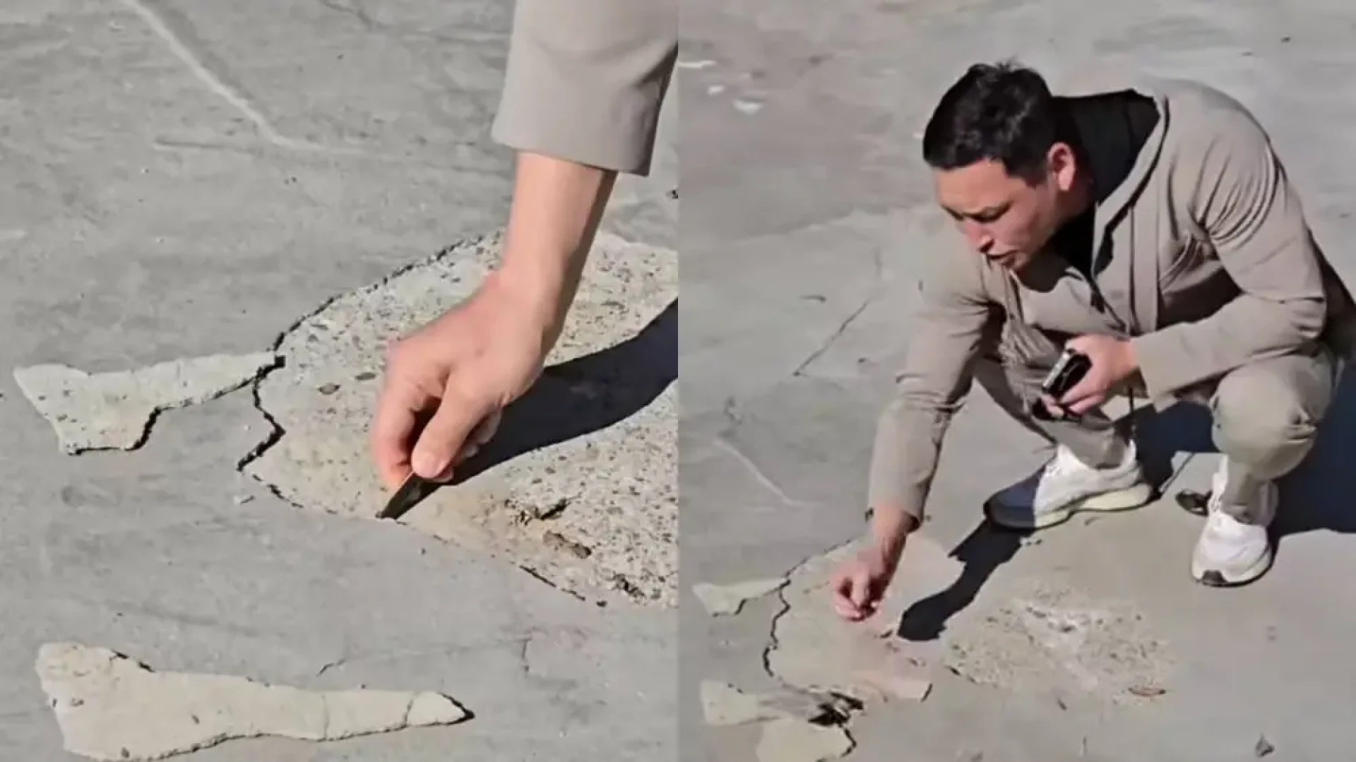 Однако на этом история с Большой Алматинкой не закончилась. Позднее тот же блогер выложил новое видео, в котором пластиковой ручкой смог счистить покрытие с плит в русле реки и выразил сомнения в качестве используемого бетона.