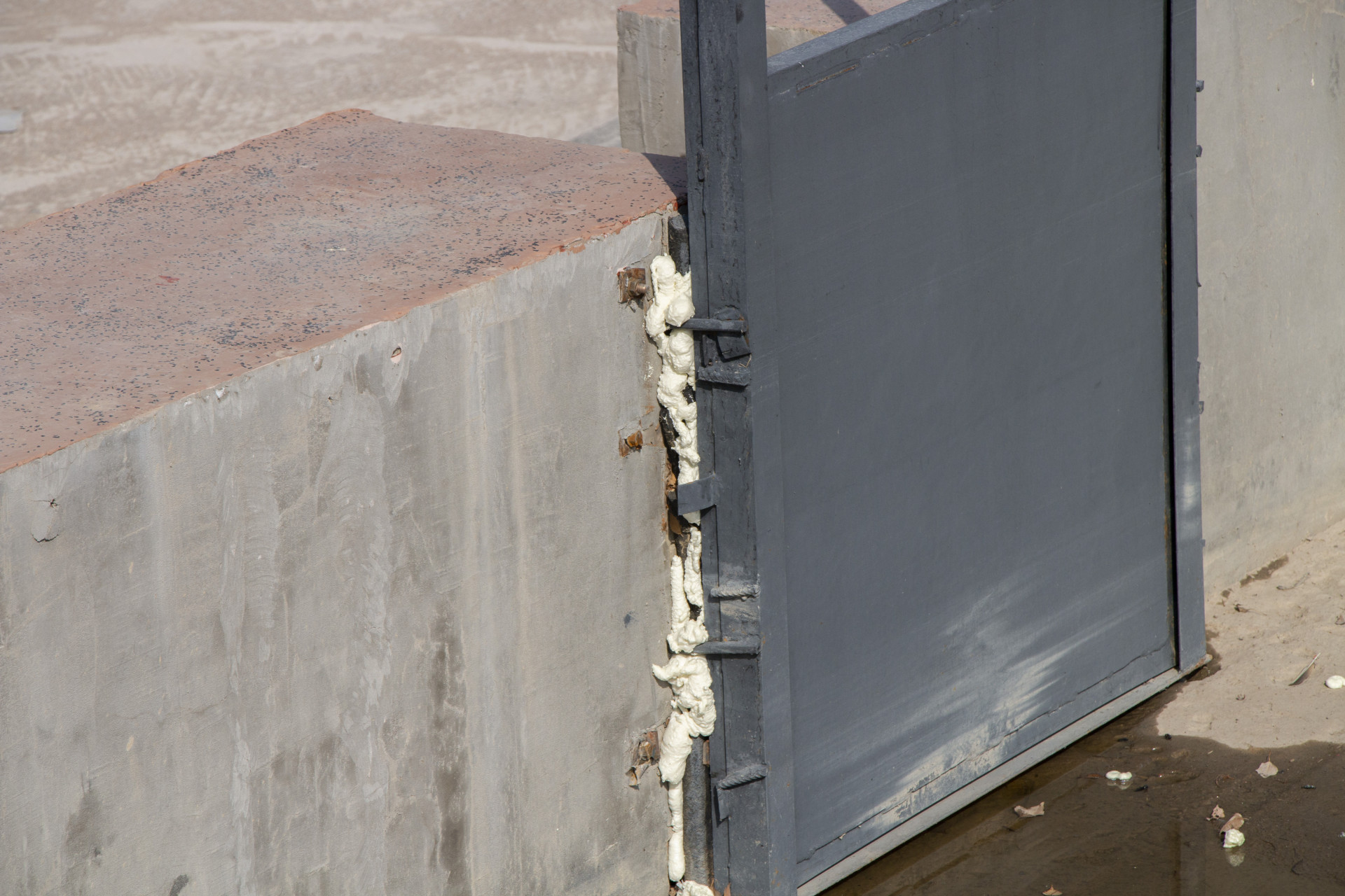 Также внимание автора привлекли железные затворы, которые были установлены на всех каскадах. Стыки между бетоном и железом были заделаны монтажной пеной.