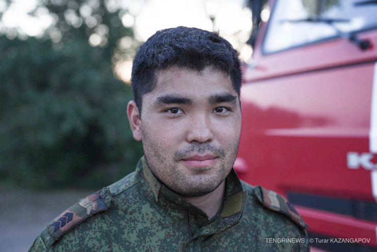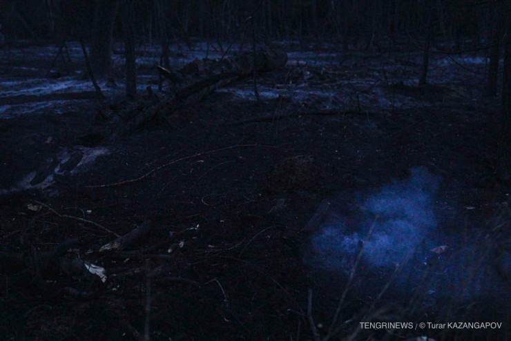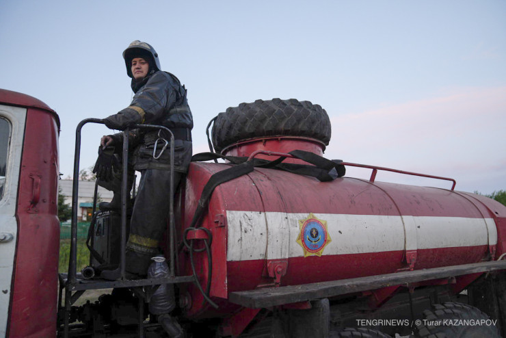 "Мы приехали из Астаны. КамАЗ у нас не полноприводный, в глубь леса заехать не можем. Все вездеходы уехали, работают на данный момент. Мы караулим снаружи. Если огонь перекинется сюда, будем тушить", - рассказывает столичный пожарный.