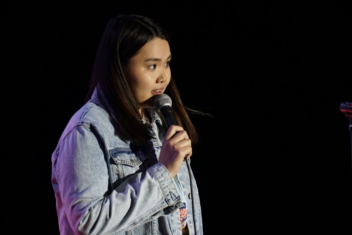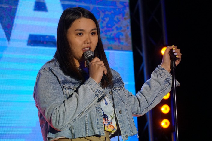 Эту девушку зовут Вероника Ким. Основная ее деятельность - маркетолог, а стендап - это хобби, которое уже стало частью жизни.