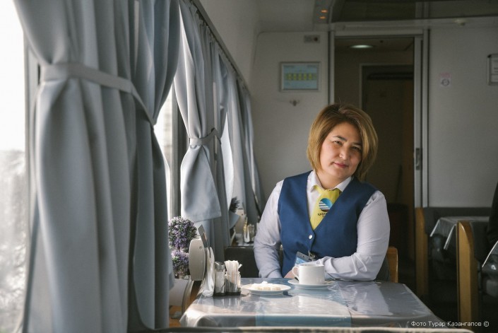 "Сел как-то дедушка в поезд. Без настроения. Возмущается. Я подошла, поздоровалась, вежливо спросила, как у него дела, что мы можем для него сделать? Он сразу изменился в голосе. Подобрел. Сказал: "Вот, сразу видно, что начальник поезда". Он признался, что его все устраивает, поговорил со мной, а потом еще дал бата", - рассказывает Раушан.