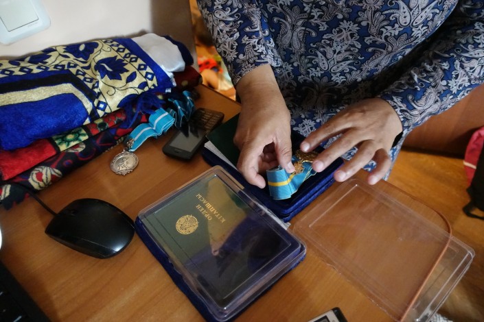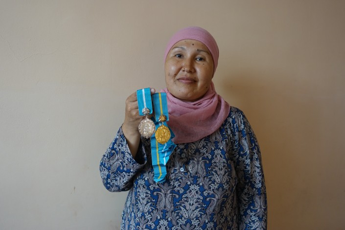 "Эти награды дают льготы, такие как бесплатный проезд. Еще я получаю за "Алтын алка" каждый месяц около 15 тысяч тенге - это общая сумма на всех детей. А пособие, как многодетной матери, мне, говорят, не положено, потому что у моего мужа оклад 200 тысяч тенге, и это превышает прожиточный минимум. А то что мы снимаем жилье, почему-то во внимание не берется", - говорит женщина.
