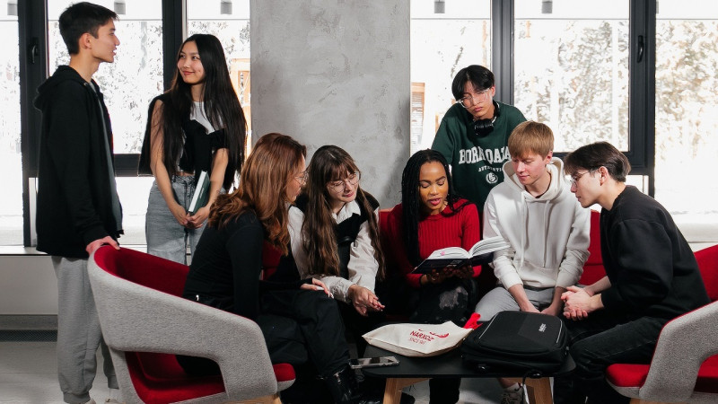 Иностранные и казахстанские студенты в кампусе Нархоза. Фото из архива пресс-службы университета.