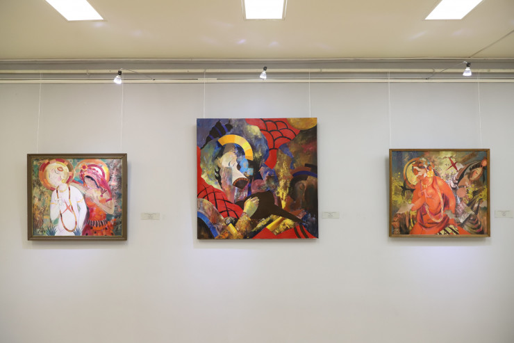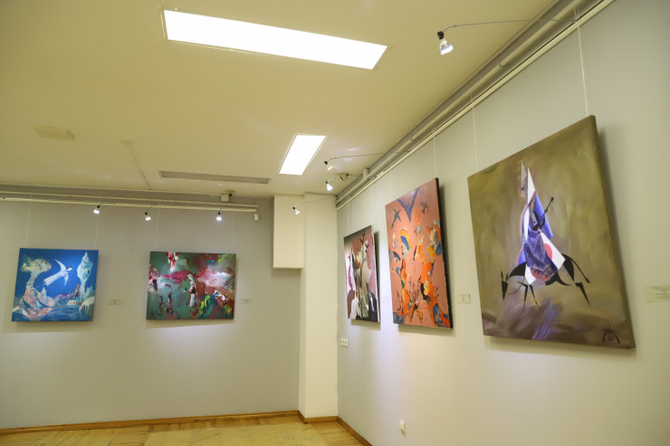 В экспозиции, которую привезли специально в Алматы, представлено порядка 80 работ трех художников: Медата Кагарова, Инны Васильевой и их сына Эркена Кагарова.