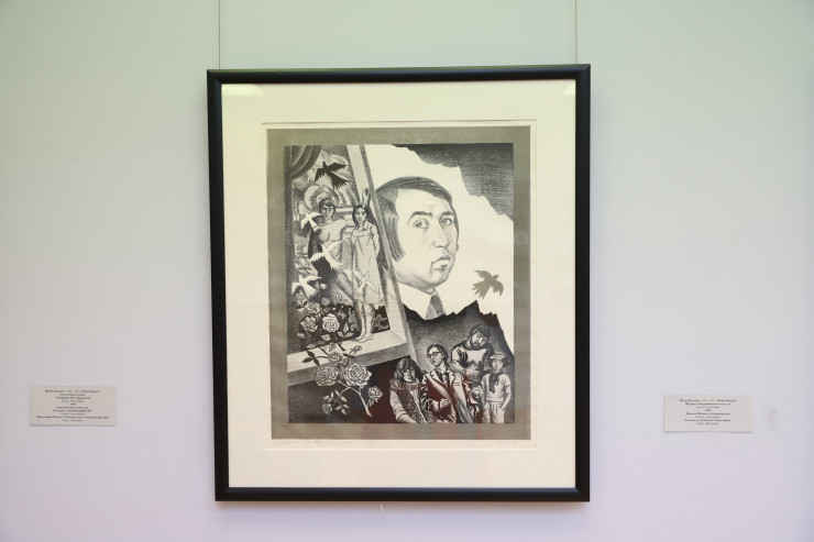На противоположной стене висит серия литографий художника под названием "Автобиография II", выполненная в тот же период времени. Она насыщена воспоминаниями из жизни: от детских лет в Алма-Ате, где Медат Кагаров провел первые 20 лет своей жизни, до послевоенных времен, Ташкентского землетрясения и творческих путешествий в Сенеж.