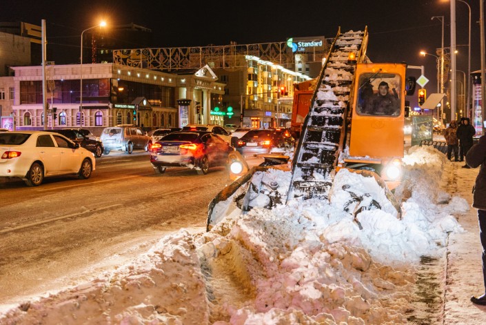В свою очередь, вывоз снега осуществляется в два этапа. В первую очередь его вывозят с остановок городского пассажирского транспорта, наземных пешеходных переходов, с мостов, мест массового посещения населения, въездов на территории больниц и других социально важных объектов - в течение 24 часов после окончания снегопада. "Окончательный вывоз снега производится по окончании первоочередного вывоза в соответствии с очередностью, определяемой заказчиком. После каждого прохода снегопогрузчика производится операция по зачистке дорожного покрытия у края дороги и у бортового камня от остатков снега и наледи с последующим их вывозом. Вывоз снега с улиц и проездов должен осуществляться на специально подготовленные площадки - снегосвалки. Места под снегосвалки определяются аппаратами акимов районов города по согласованию с природоохранными организациями", - прокомментировали в акимате.