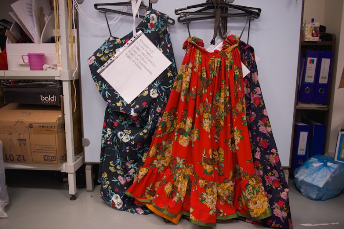 Художник-сценограф Эцио Фриджерио проверяет, правильно ли бутафоры использовали все оттенки, где-то добавляет свои штрихи. Очень интересной получилась сцена ярмарки. Здесь все как на настоящем испанском рынке - шляпы и сумки, фрукты и овощи представлены в изобилии. Сумки сделаны со специальными потертостями, чтобы под светом софитов могли выглядеть естественно, в противном случае при попадании на них театрального света, они рискуют стать глянцевыми и "выбьются" из общего стиля постановки.