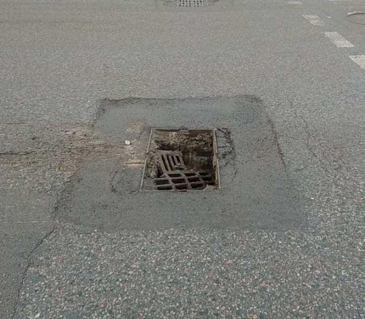 Возможно, причина того, что люк проседает и образуется яма, - некачественный материал. И еще крышки от люков продолжают воровать. Считаю, надо принимать закон, чтобы в пункты приема металлолома запрещали их принимать.