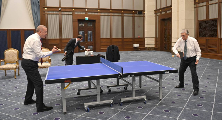 - О контактах на высоком уровне. Во время одной из встреч Токаев и Эрдоган играли в настольный теннис...