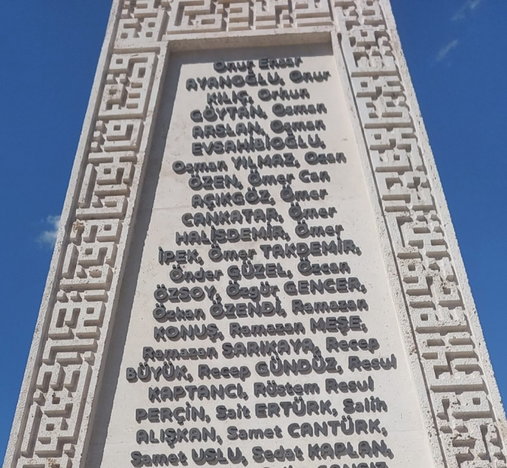 Рядом с ней возвышается каменная стела, на которой с нескольких сторон высечены имена и фамилии жертв переворота. В самой Турции их называют мучениками - шахидами.