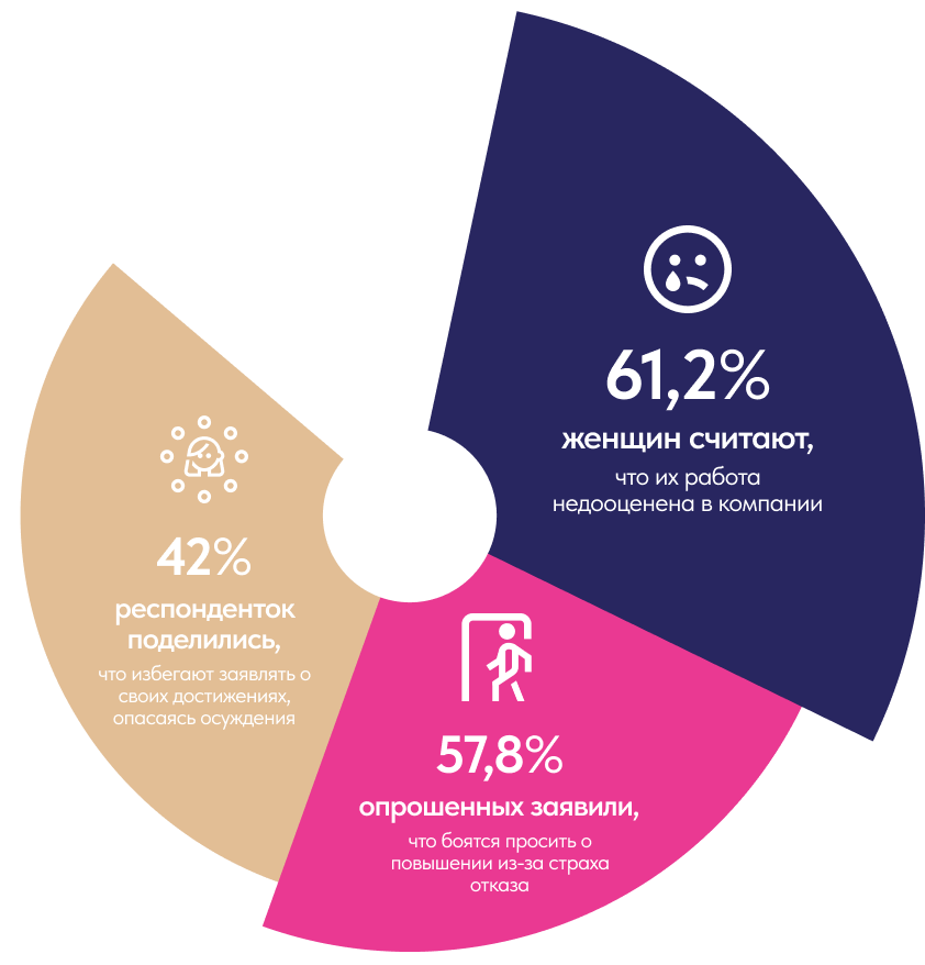 • 46,3% респонденток сталкиваются с ожиданиями по совмещению карьеры и семейных обязанностей, что создаёт дополнительную нагрузку.