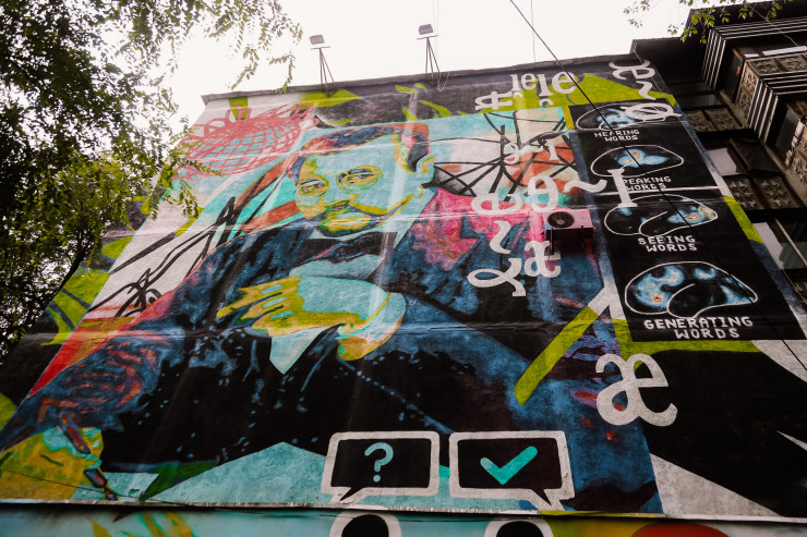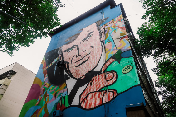 "Гоголь". Автор — стрит-артист Andrew из мастерской Repas. При создании работы был смиксован классический портрет писателя с тематикой "ретровейв" (стилистику 80-х отличают неоновые краски). Цитата "Поднимите мои веки" взята из мистического произведения "Вий".