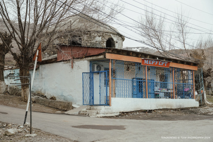 Этот магазин имеет, можно сказать, свою изюминку - купол на крыше. Как оказалось, это здание было построено в зажиточные времена Ащысая. Изначально здесь планировали сделать общественную баню, а на крыше открыть чайхану. Но времена изменились, и проект так и остался незавершенным. Объект превратили в торговую точку.