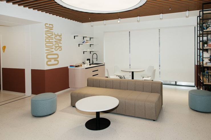 На каждом этаже расположены кухни, столовые, коворкинги, а на первом этаже – магазин, прачечная, барбершоп, кофейня, аптека и процедурный кабинет. Также действует медицинский центр с бесплатным обслуживанием для несовершеннолетних, а для лиц старше 18 лет предоставляется скидка в 15 процентов на медицинские услуги.