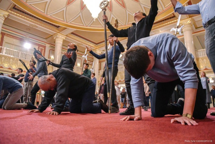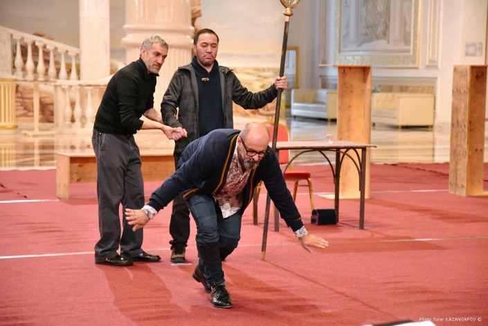 На улице пасмурно и идет дождь. А в фойе театра "Астана Опера" идет грандиозная репетиция. Мраморный зал театра обычно служит для сбора гостей, но сейчас тут импровизированная сцена, где артисты готовят финальную сцену одного из актов новой постановки.