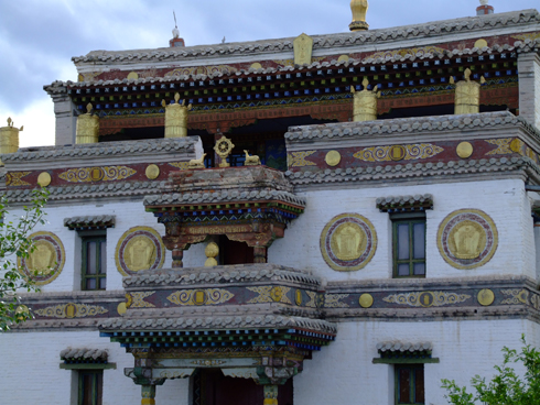 В XVI веке по приказу Абатай-хана рядом с развалинами прежнего Каракорума был возведен монастырь Эрденидзу - "Храм сокровищ". Центральное место в нем занимают храмы Гурбандзу - "Три сокровища". Они символизируют три этапа жизни Будды. Войти в храм без стука - значит застать богов врасплох и навлечь на себя страшный гнев. Экспедицию сначала пускать не хотели, правда, по другой причине. Как оказалось, в шесть вечера храм закрывают. Однако преодолевшей почти 6000 километров группе казахстанских туристов все же уступили: ворота открыли на 20 минут.