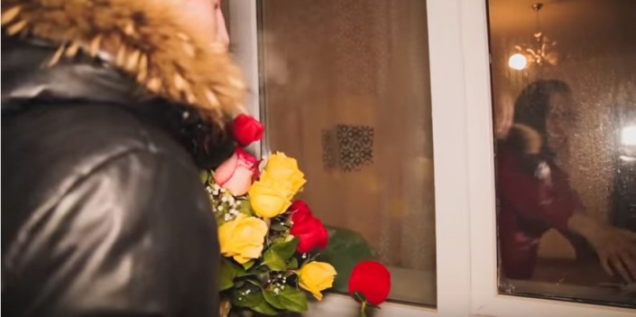 С помощью строительного подъемника молодой человек поднялся с букетом к окну возлюбленной и сделал ей предложение в Астане.