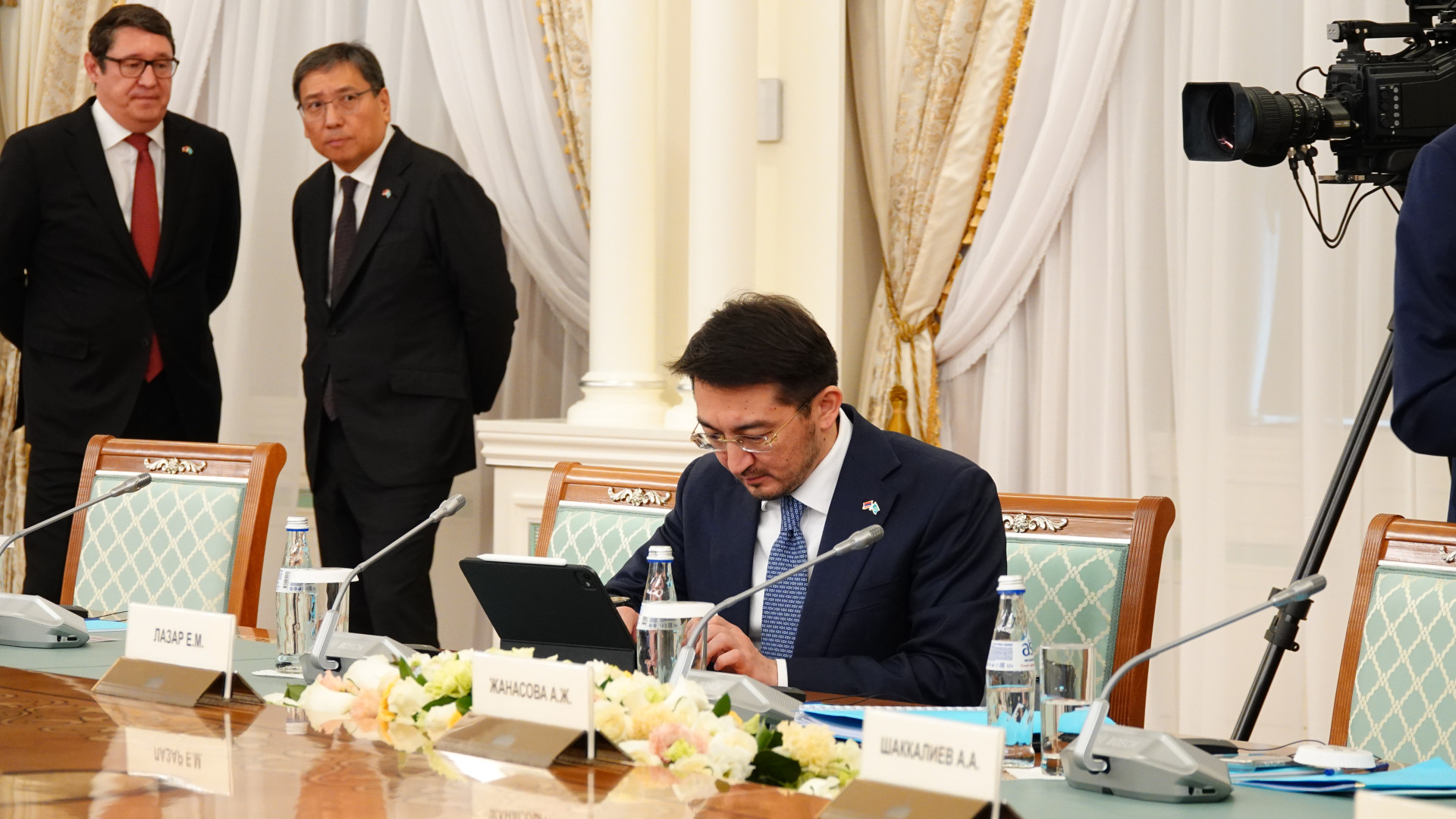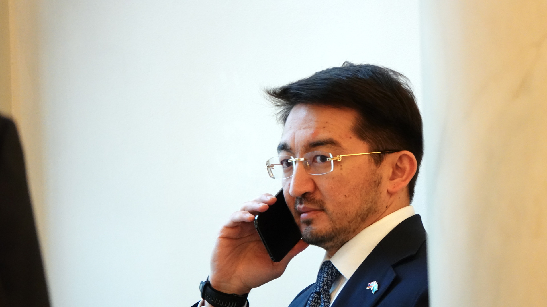 Министр искусственного интеллекта Жаслан Мадиев был на линии — с тем самым внимательным выражением, которое бывает у людей, пытающихся успеть решить что-то важное до старта большой встречи.