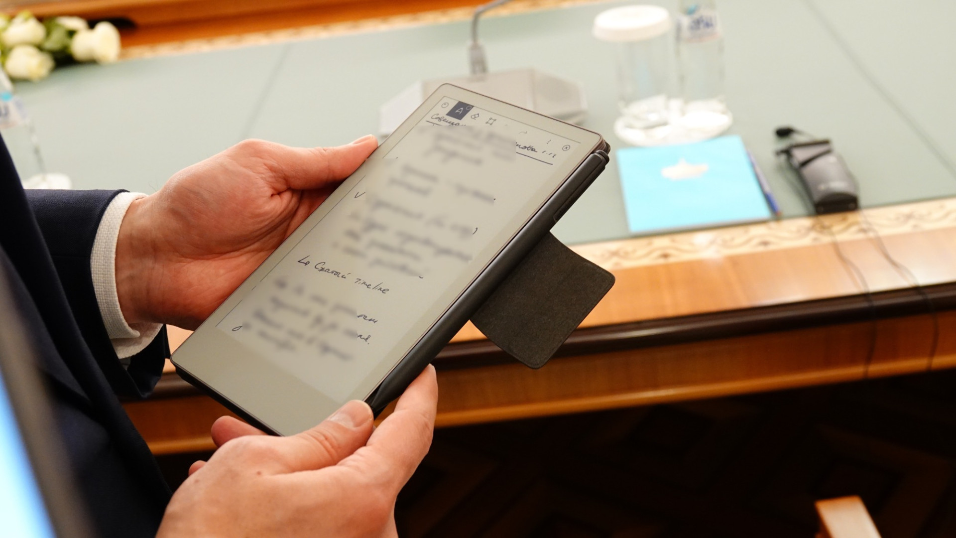 — Очень удобная записная книжка. Экран почти как настоящая бумага, поэтому глаза не устают, — говорит Мадиев.
