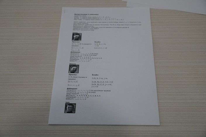На столах рядом с приставками лежат комбинации из суперударов для Mortal Kombat, но сегодняшние игроки эти связки уже не используют.