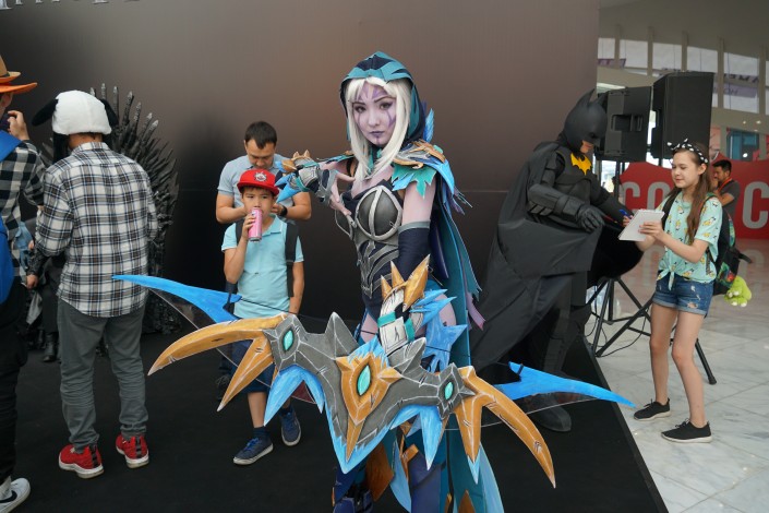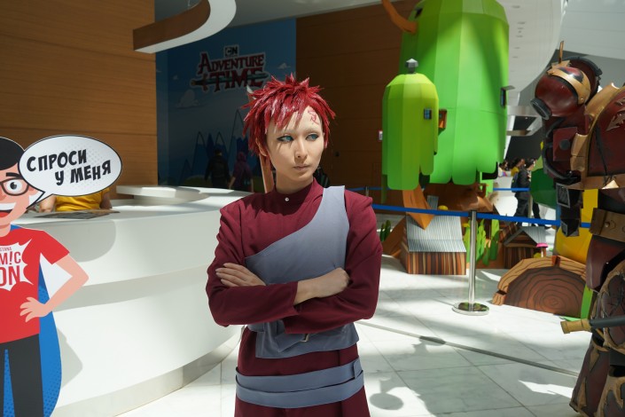 Рядом с ней охотно фотографируется со всеми желающими еще один российский косплеер: "Я очень люблю создавать новое, вкладываю всю душу в костюмы, создаю любимых персонажей, это безумный фан".