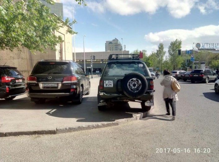 14 автомобилей, нарушивших правила стоянки, заснял 19 мая очевидец по улице Нуржолы, между Кунаева и Достык. "Зафиксированы нарушения знаков 3.27 ПДД РК водителями: 1) Chevrolet - 117СХА01; 2) Nissan - 211VA_ _ _; 3) BMW - 273VCZ13 (помимо знака 3,27, нарушил пункт 2 главы 12 ПДД РК); 4) KIA - Z673ХВМ; 5) Toyota - 260РКА01; 6) Hyundai - 852АОА02; 7) Cadillac - 088XXL01; Volkswagen - 803OMA01; 9) Niva -  028KWA01; 10) Mercedes-Benz - 370LFA01; 11) Nissan - Z731KUM; 12) Toyota - 739ВСА01; 13) Kia - 058РМА01; 14) Nissan - 489НВА01. И как мы выглядим в глазах инвесторов-иностранцев во время ЭКСПО-2017, когда такой бардак творится", - рассказал автор видео.