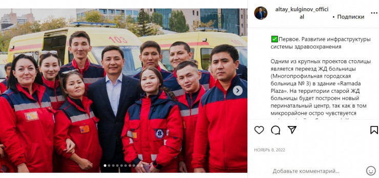 И вот, 8 ноября 2022 года экс-аким Астаны Алтай Кульгинов заявил о том, что в здание бывшего отеля переедет многопрофильная городская больница № 3 (ж/д больницы).