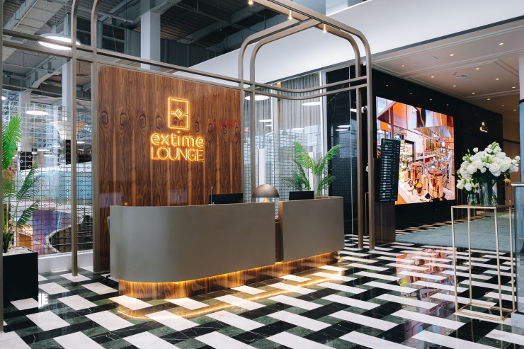 Залы Extime Lounge были специально спроектированы, чтобы обеспечить непревзойденный уровень обслуживания пассажиров, предлагая как бизнес-зал, так и зал для VIP-клиентов, общей площадью около 1 160 квадратных метров. Здесь путешественники смогут воспользоваться уникальными условиями для отдыха и работы. Интерьер лаунжа оформлен в элегантном современном стиле, сочетающем элементы роскоши и комфорта.
