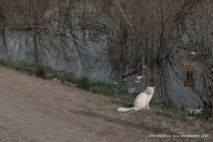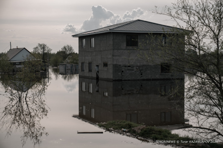 Теперь он наблюдает за строением с насыпи, которая не смогла защитить дом от большой воды. Нурсултан попросил сделать фото дома поближе, чтобы оценить масштабы ущерба.