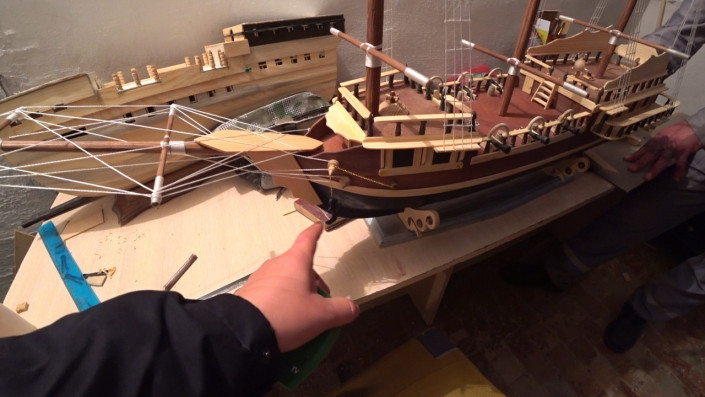 В каморке, что за актовым залом, работает кружок, где осужденные создают модели кораблей.