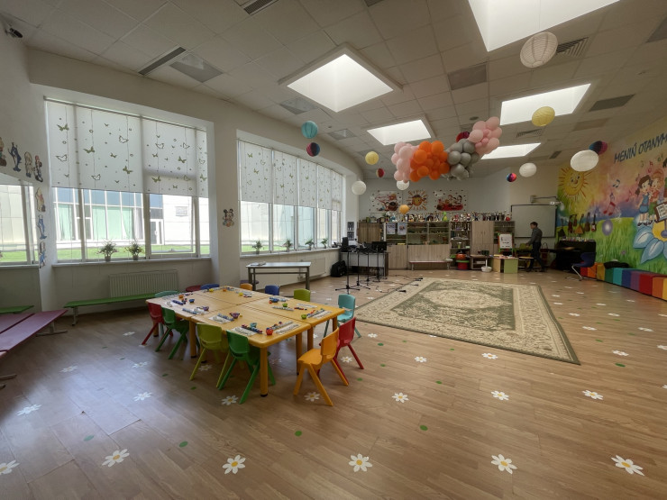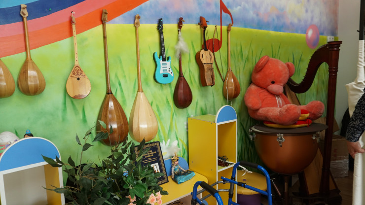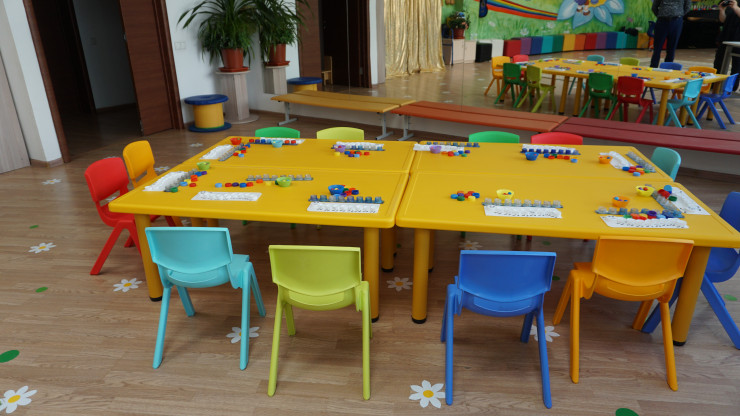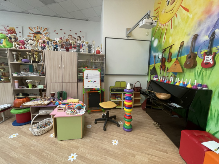 "Вот, к примеру, недавно приобрели эти яркие столы и стулья. Тоже все по цветам, которые обозначают ноты. И дети будут запоминать названия цветов легче. Ведь ребенок с легкостью запомнит, к примеру, слово "сары", так как это цвет его стульчика", - сказал учитель.