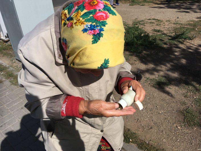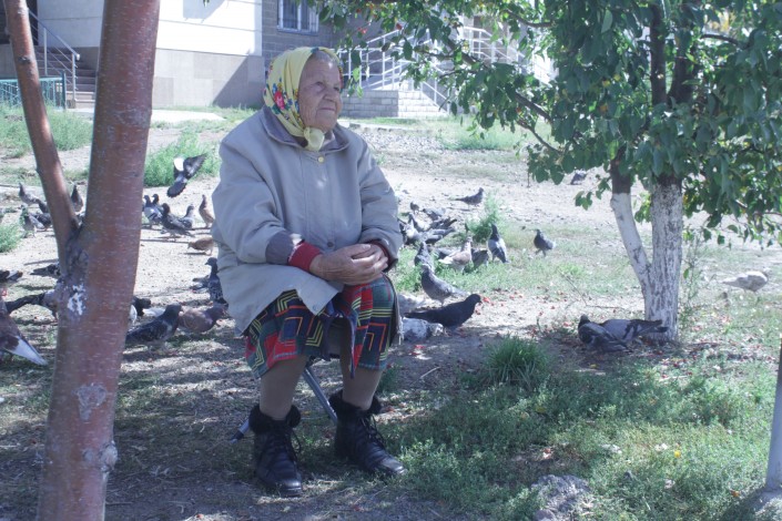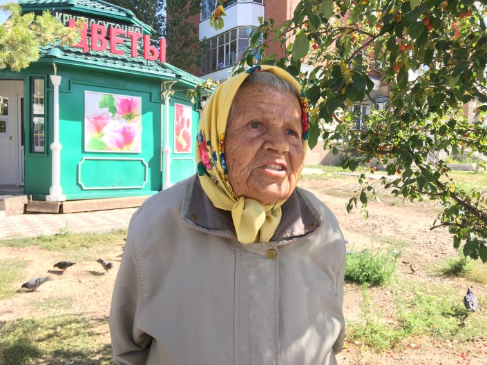 В другом районе Астаны, тоже в старой части, на торговлю вышла Ольга Ивановна. Она продает вязаные вещи. Признается, что хоть это занятие и приносит ей небольшую прибавку к пенсии, но все же это не главное. На улицу с товаром она выходит в том числе и для того, чтобы общаться с людьми.