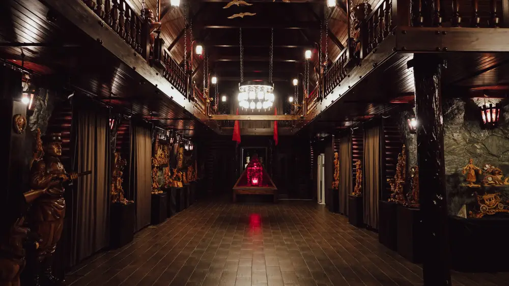 Три этажа с сотнями уникальных деревянных скульптур. Проработана каждая мелкая деталь.