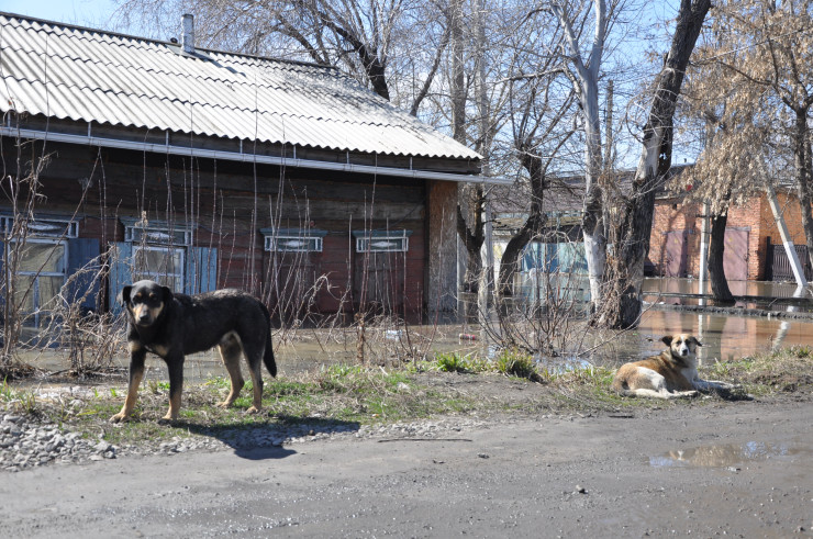 У кромок воды дежурят собаки из затопленных дворов, они тоскливо всматриваются в водную гладь – ждут своих хозяев. Иногда заходят в воду.