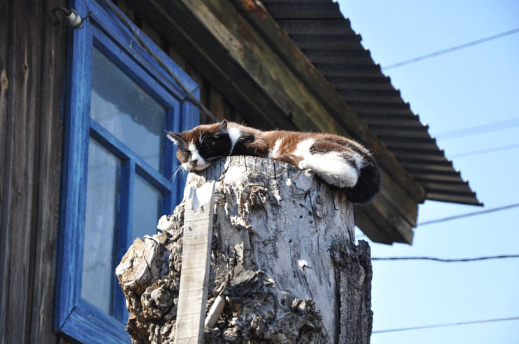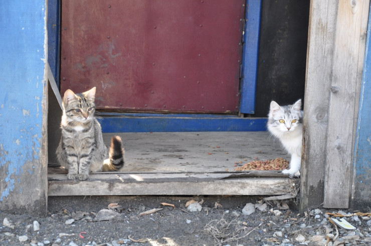 А рядом в пока не затопленном доме собрались местные коты и котята.