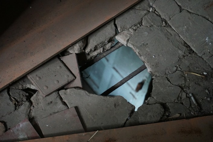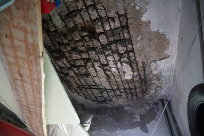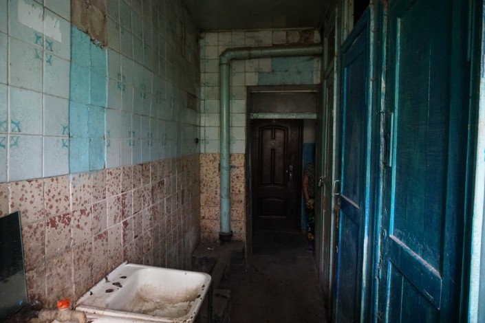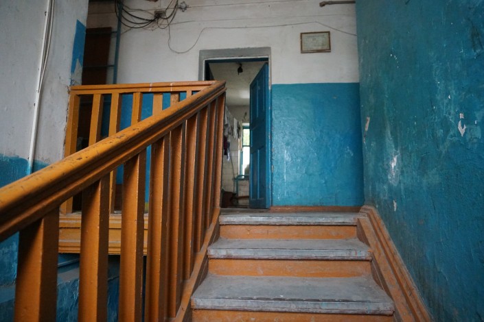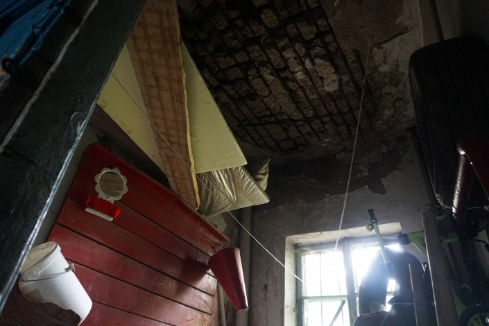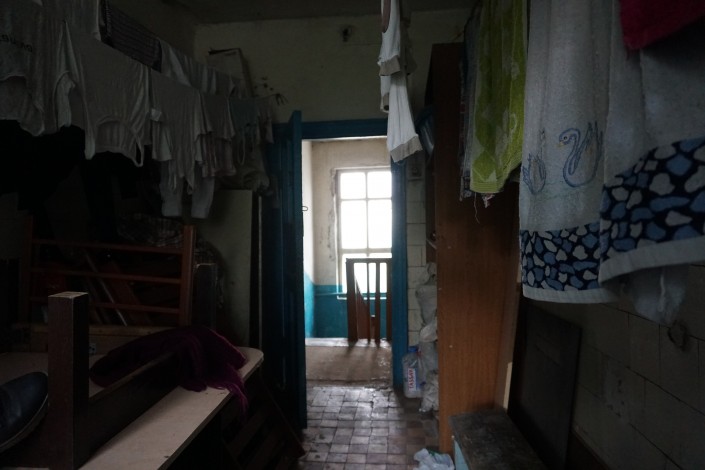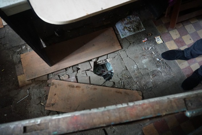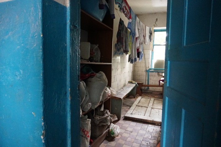 "Мы пол дверью закрыли, потому что уже все рушится, а у всех здесь маленькие дети бегают. Поставили дверь, чтобы дети не упали. Посмотрите, пол почти ни на чем не держится", - объясняют местные жители.