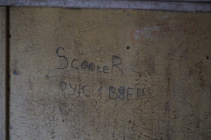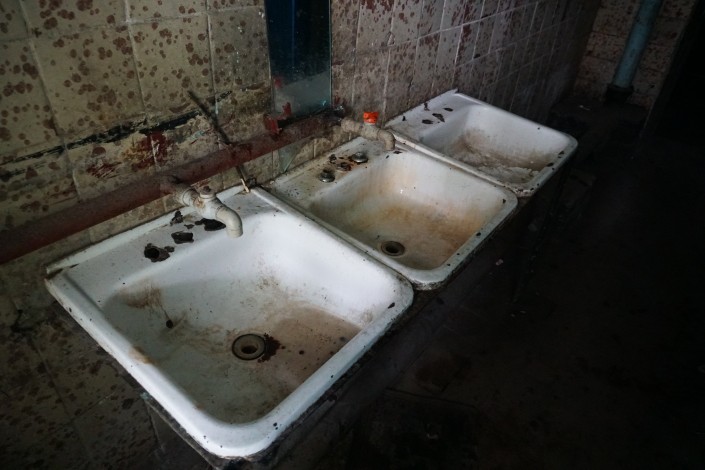 Две туалетные кабины расположены на первом этаже. Одна - для тех людей, которые живут внизу, другая - для тех, кто наверху. Из этических соображений мы не будем показывать состояние самих туалетов, отметив лишь, что в них почему-то нет света.
