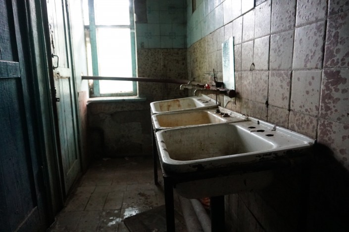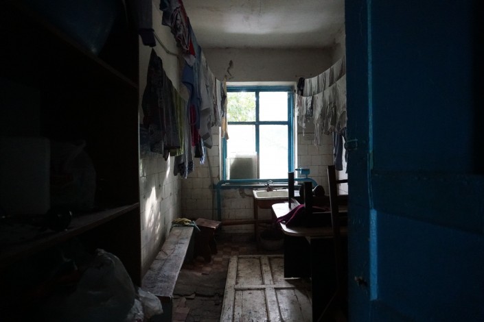 Ходят в туалет с фонариком. "Всю жизнь света не было. Но опасно тут сидеть, крыша может провалиться", - говорят местные. К слову сказать, первому этажу с туалетом повезло больше - в нем есть окно, и, соответственно, днем в нем не так темно.