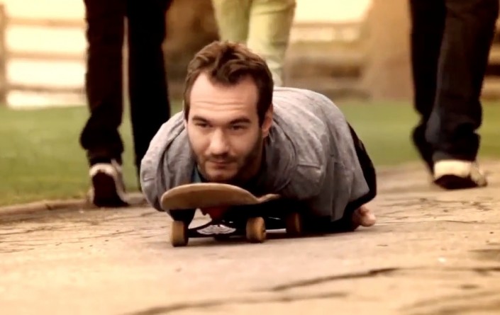 Ник постоянно подкидывает телевизионщикам яркие инфоповоды. А те в благодарность за эффектные кадры готовы его на руках носить. Собственно, другим способом доставить его в студию и не получится: на скейте-то он может, а вот по ступенькам на своих двоих - никак. Нет у него своих двоих. От рождения.