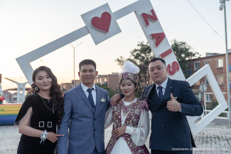 А еще это обязательное место для фотосессий у молодоженов. Одну из таких пар нам как раз посчастливилось встретить. Это Гулим Черапиева и Нурлан Уажанов.